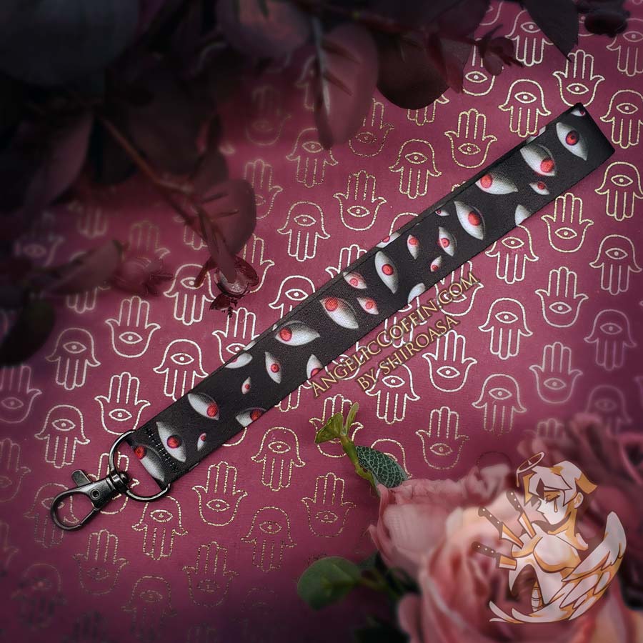 - 9″x1″ (23cmx2.54cm) wristlet lanyard of eyeballs